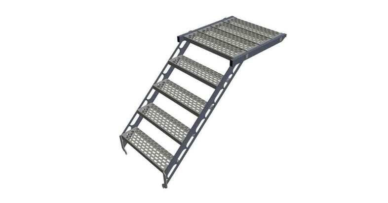 Den uppdaterade versionen av 1m trapplöpet är 25% lättare och har fördelen att den följer stegkonfiguration och höjd från övriga trapplöp i det symmetriska trapptornet. Det gör trappan mer ergonomisk att använda jämfört med föregångaren. Självklart är trapplöpet typkontrollerat och uppfyller lastklasskraven samt kraven för tillträdesled enligt standard.