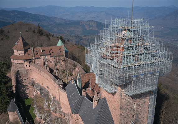 Takreparation på Château du Haut-Kœnigsbourg i Alsace