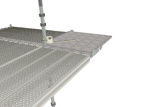 Vår nya justerbara HAKI Hörnkonsol 460–690 mm och 400-600 mm täcker mellanrummet som uppstår i innerhörn på HAKI Universal och förhindrar därmed risken för att ramla ner eller tappa något från hög höjd. Konsolen är justerbar mellan 3-2 plank 690-460 mm respektive 600-400 mm och är kompatibel med både aluminiumplank och stålplank 230 mm respektive 200 mm.