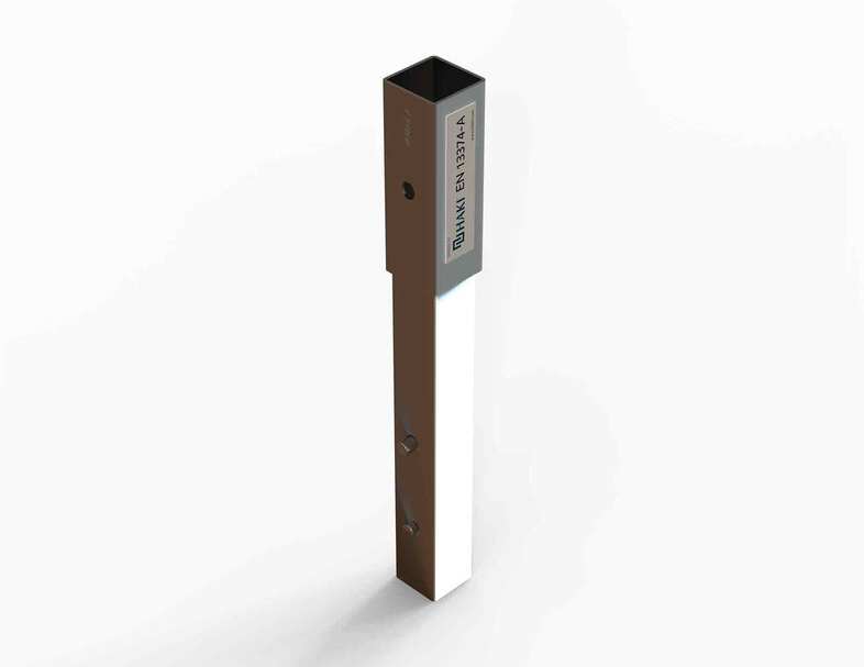 Fästet har ett uttag för en stolpe i mitten och förankras på kanten med skruvar genom två öppningar på vardera sidan av uttaget. Med öppningarna kan man justera bredden mellan skruvarna från 80 mm till 160 mm.