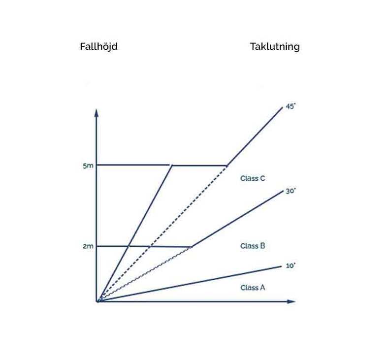 - 45° och 60° och fallhöjden är mindre än 5 m.